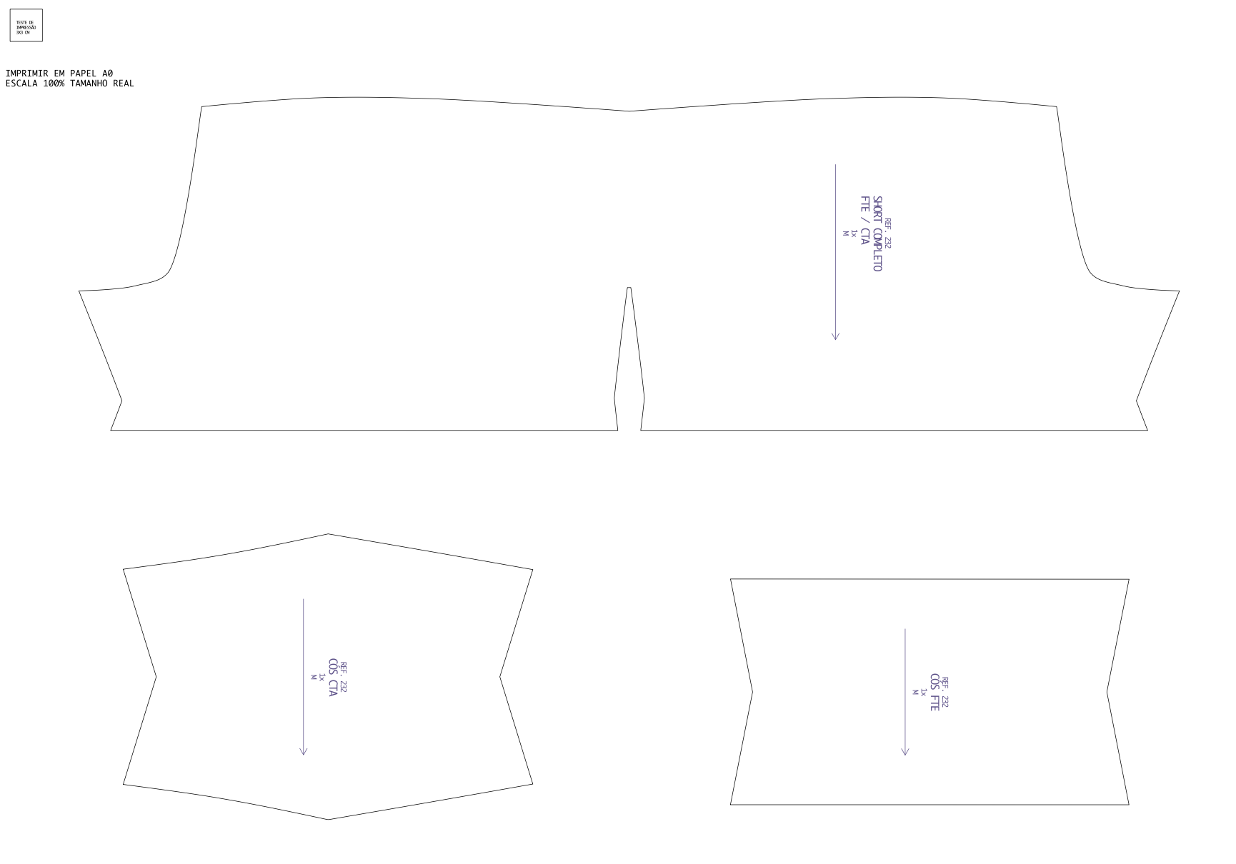 Molde para confecção short fitness
