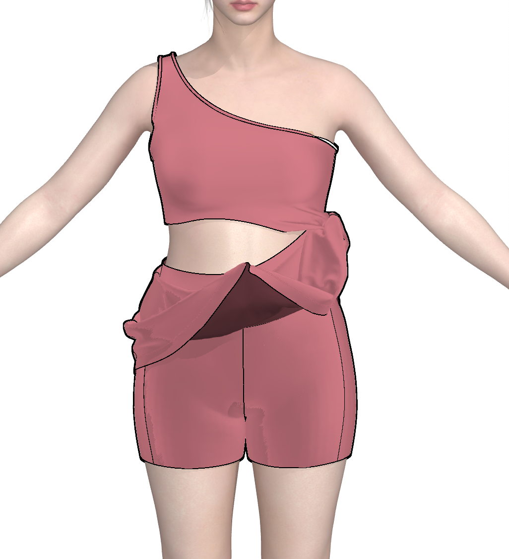VESTIDO BEACH UM OMBRO, ASSIMÉTRICO, COM SHORT E SAIA